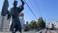 徳島駅前のクレメントプラザとヤシ並木の景観